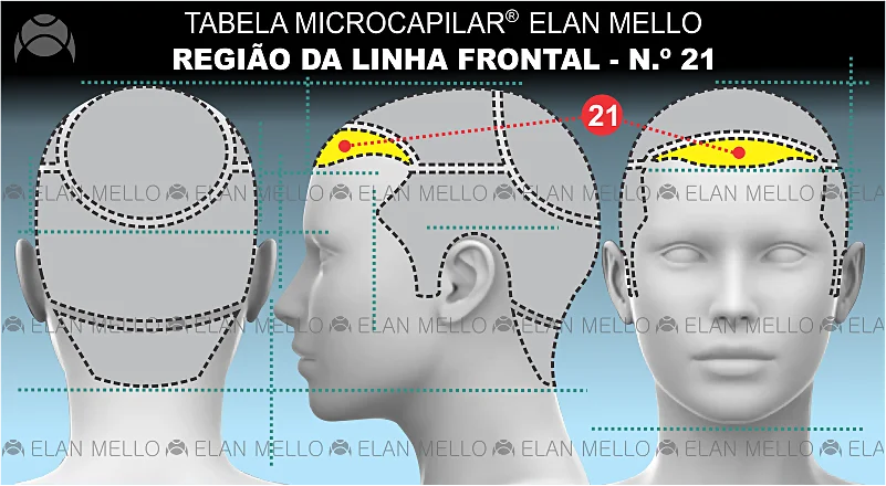 Esse serviço é indicado* para restaurar a densidade em cabelos rarefeitos na Região Linha Fronta / hairline (n.º21 da Tabela Microcapilar® Elan Mello).