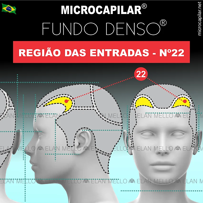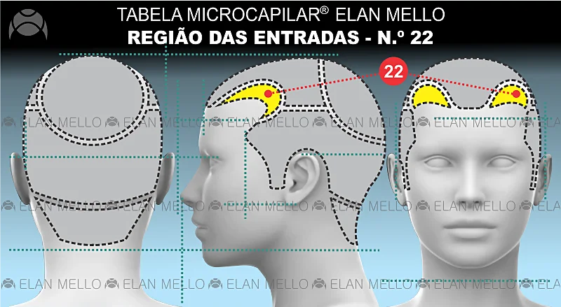 Esse serviço é indicado* para restaurar a densidade em cabelos rarefeitos na Região das Entradas (n.º22 da Tabela Microcapilar® Elan Mello).