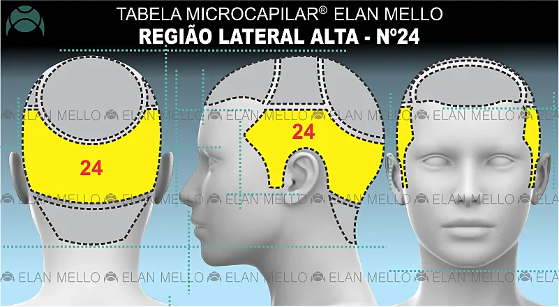Esse serviço é indicado* para restaurar a densidade em cabelos rarefeitos na Região Lateral Alta (nº24 da Tabela Microcapilar® Elan Mello).